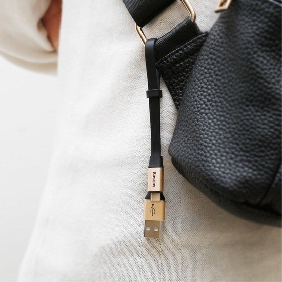 Baseus USB-C cable with a flat, 23 cm design for fast charging and data transfer without tangles. Perfect for on the go and use with power banks.