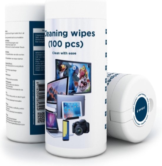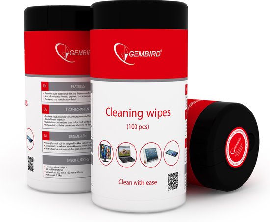 Schermreinigingsdoekjes voor het effectief reinigen van beeldschermen, laptops en andere elektronische apparaten. Deze set van 100 individueel verpakte doekjes van Gembird zorgt voor streepvrije resultaten.