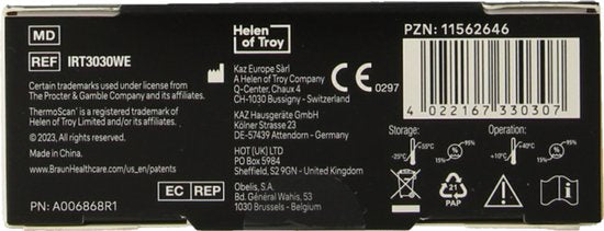 Ear thermometer for fast and accurate temperature measurement in just 1 second. This Braun IRT 3030 is suitable for the whole family, including newborns, and uses disposable lens filters for hygienic use.