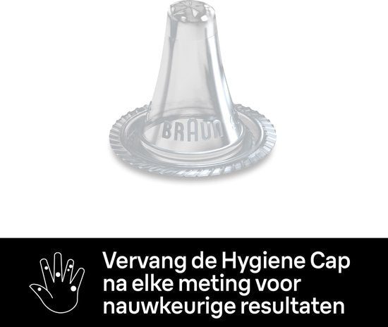 For hygienic use, BPA and latex-free disposable lens filters are included. These protect the measuring sensor and prevent cross-contamination between users. The thermometer stores the last measurement result, allowing you to compare it with a new measurement.