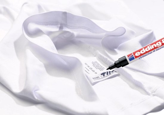 The EDDING 8040 textile marker is specially developed for writing on untreated textiles. With its fine 1 mm round tip, you can create clean, sharp lines that remain perfectly in place, even after washing.