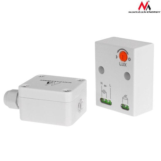The Maclean MCE35 dusk-to-dawn switch provides automatic lighting when it gets dark. The external sensor measures the light intensity in the environment and switches on connected lamps at dusk.