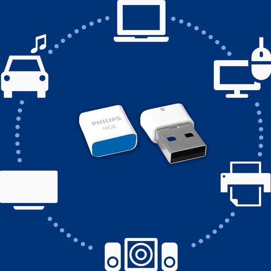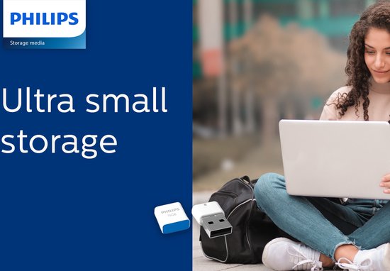 Philips Pico USB stick - one of the smallest USB flash drives on the market with 16 GB storage capacity. Measuring only 1.5 x 2.3 x 0.8 cm, it even fits in your wallet.