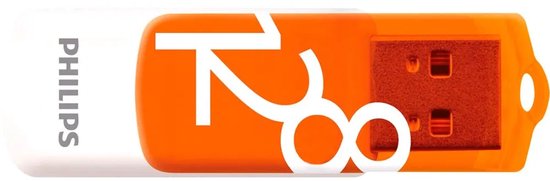 Philips Vivid USB 2.0 stick with 128 GB storage capacity for all your files. The orange casing features a convenient swivel system to protect the connector.