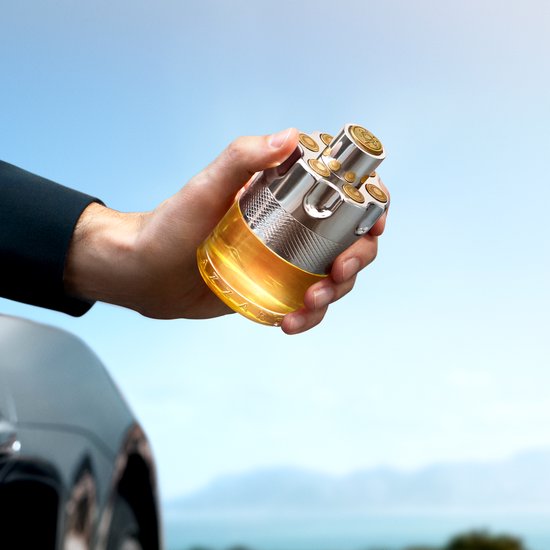 De flacon is een kunstwerk met zijn mechanische, chique vormen en cilindervorm die spel en uitdaging symboliseert. Het stralende metaal herinnert aan de zonnigheid van het parfum en maakt het tot een object van luxe en verlangen.