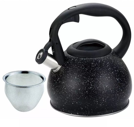 Kinghoff waterkoker met ingebouwde theezeef voor vers getrokken thee en hete dranken. Deze roestvrij stalen fluitketel heeft een capaciteit van 1,2 liter en is geschikt voor alle kookplaten inclusief inductie.