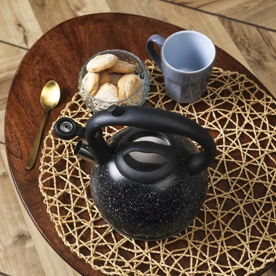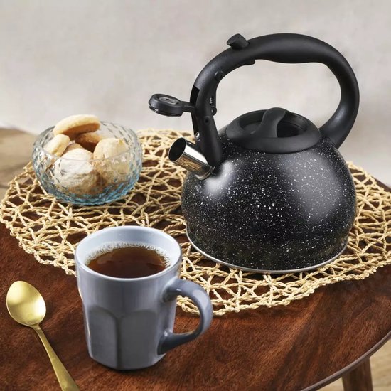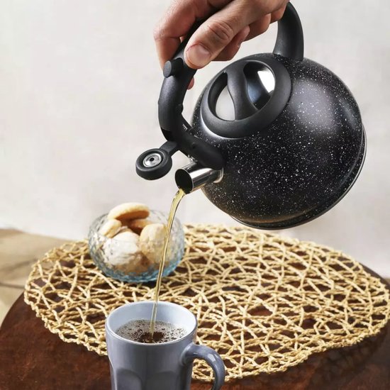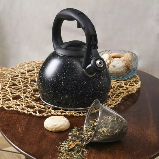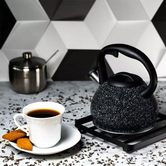 De Kinghoff waterkoker combineert functionaliteit met stijl in een elegant zwart marmer design. Met zijn ingebouwde theezeef kun je direct losse thee trekken zonder extra accessoires nodig te hebben.