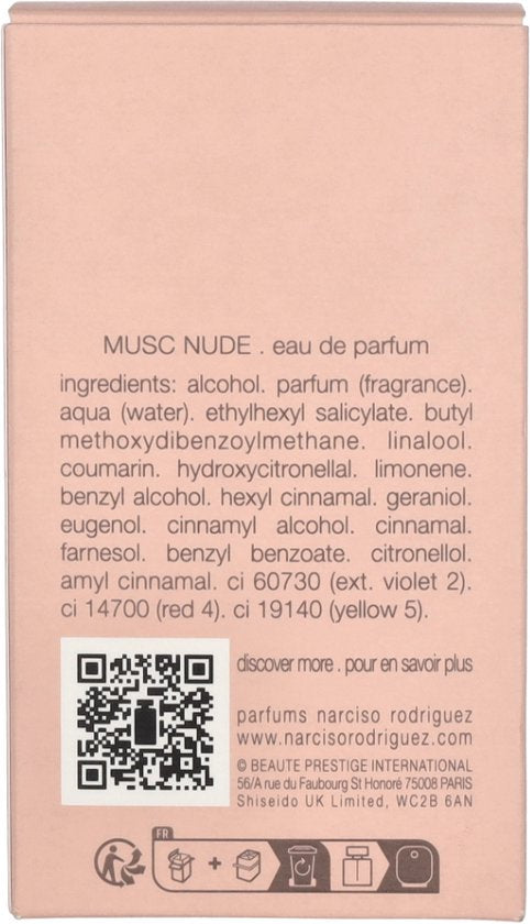 For Her Musc Nude is de nieuwste interpretatie van Narciso Rodriguez' iconische muskusfamilie. Deze vegan eau de parfum is gecreëerd door parfumeur Sonia Constant en biedt een moderne twist op de chypre-geurenfamilie.