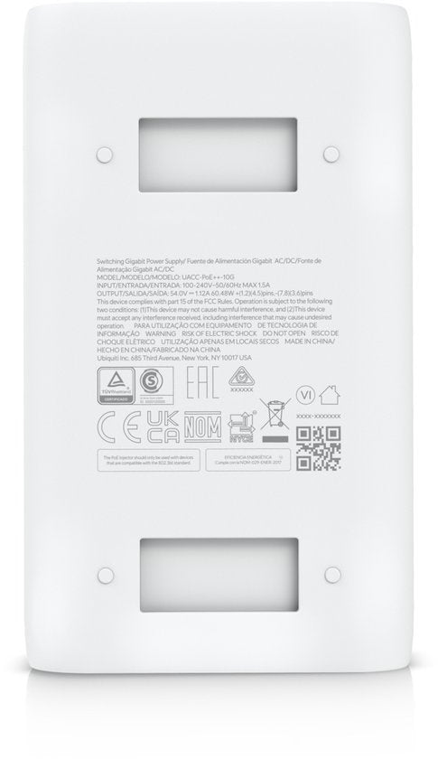 PoE++ adapter voor 10 Gigabit Ethernet netwerkapparatuur met 54V voeding. Deze Ubiquiti UACC-PoE++-10G biedt volledige bescherming tegen overspanning en overbelasting.